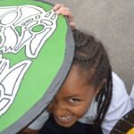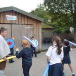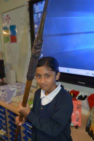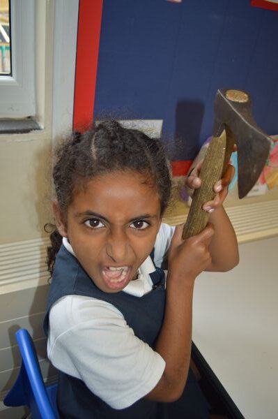 Everyone was very excited to see and hold real Viking weapons and artefacts. The highlight for many was practising defence skills with a shield, as we faced a shower of (soft!) javelins.