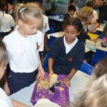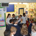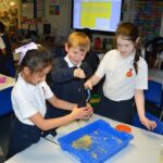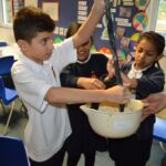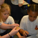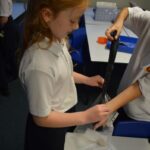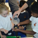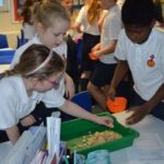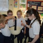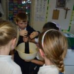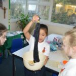 On Wednesday, the children used leftovers from lunch to take the food on a journey through our very own digestive system – including tights and mixing bowls!