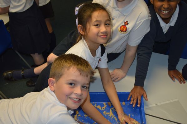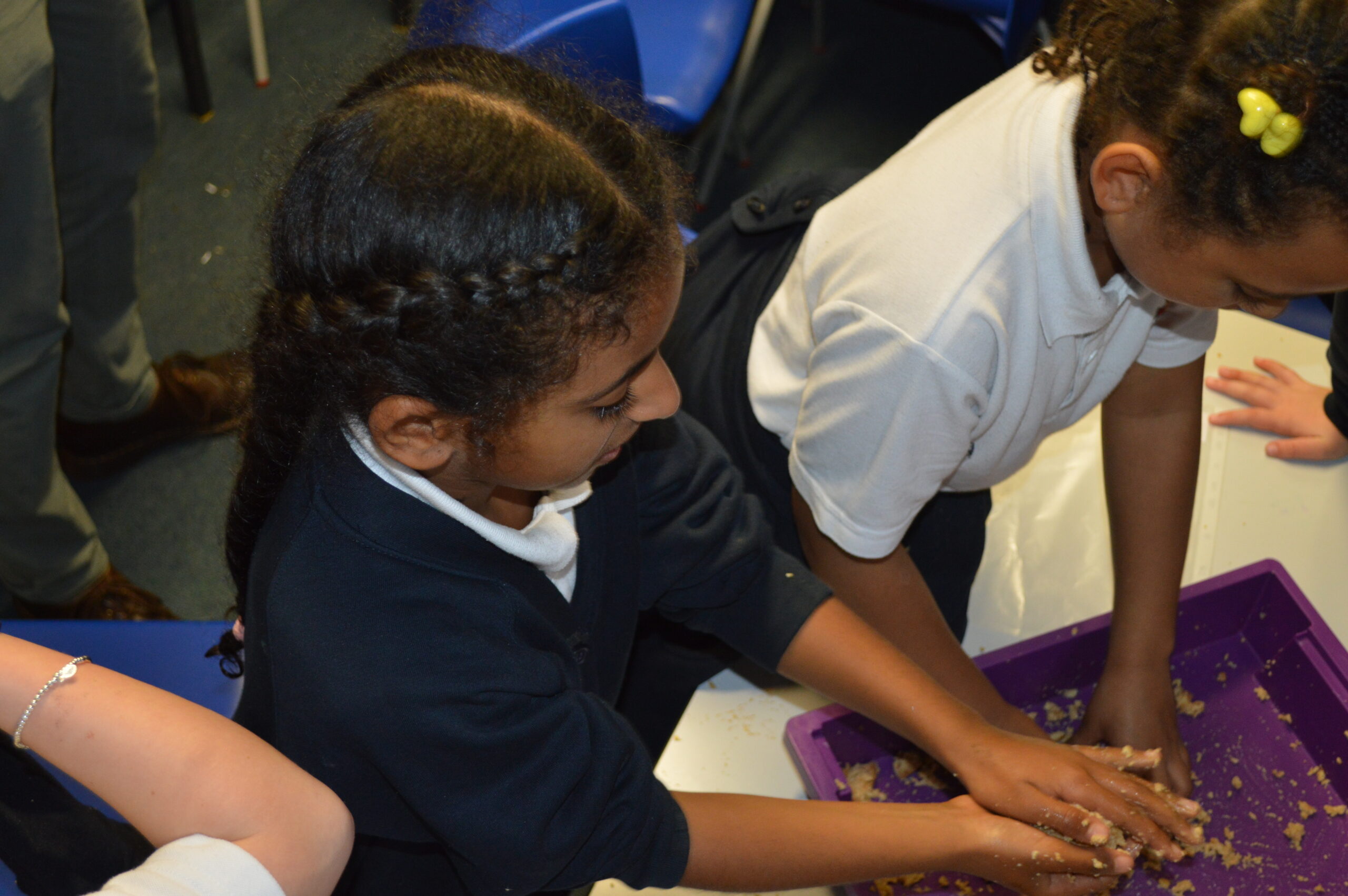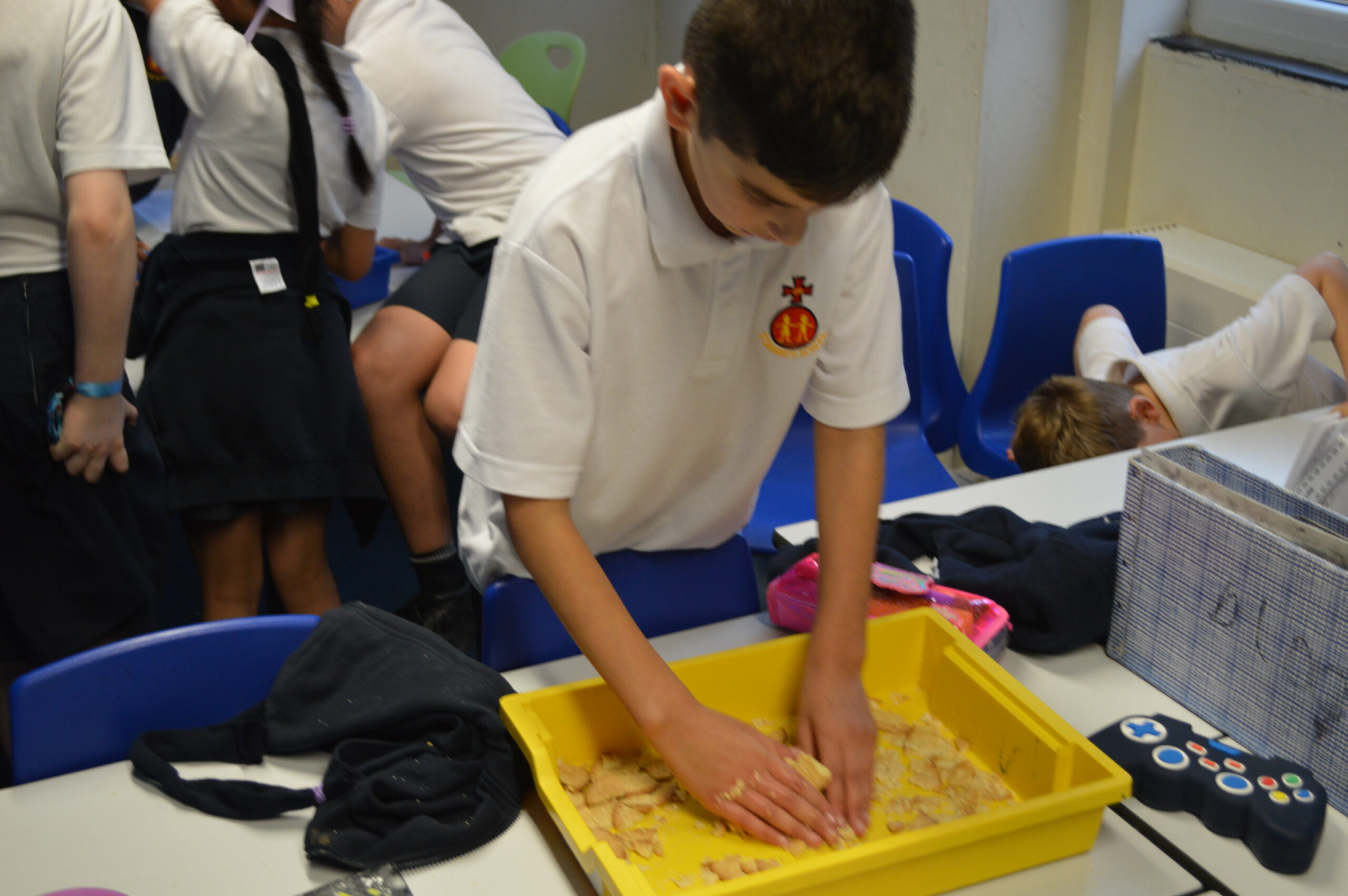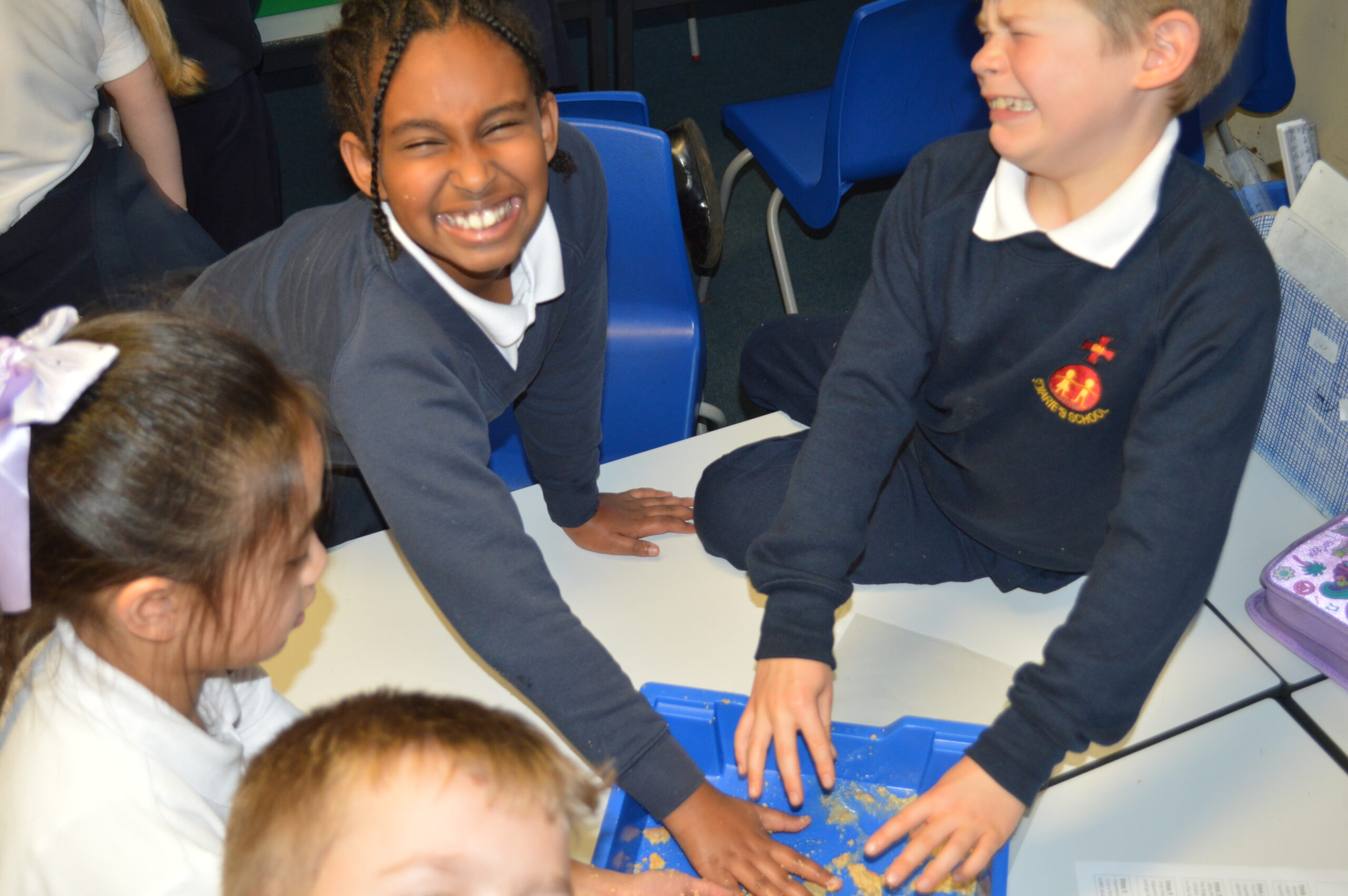 On Wednesday, the children used leftovers from lunch to take the food on a journey through our very own digestive system – including tights and mixing bowls!