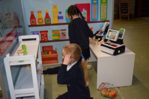 The shop and hairdressers were full of laughter and chatter as children served customers, counted money, styled hair and enjoyed pretending to be grown-ups. One of the highlights was the fire station, where children excitedly dressed up as firefighters, responded to emergencies and worked together to help others.