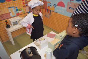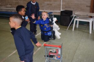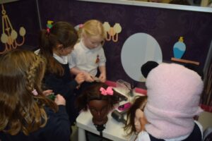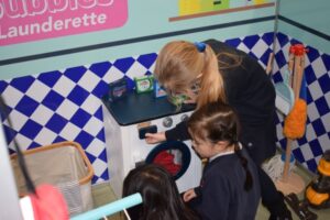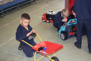 The shop and hairdressers were full of laughter and chatter as children served customers, counted money, styled hair and enjoyed pretending to be grown-ups. One of the highlights was the fire station, where children excitedly dressed up as firefighters, responded to emergencies and worked together to help others.