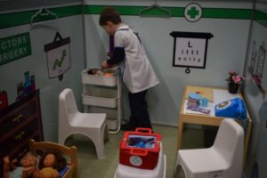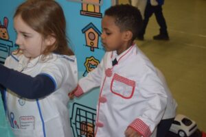 They loved stepping into different roles and using their imaginations to bring the mini city to life. The post office was buzzing as children eagerly wrote letters and sorted parcels, while the doctors’ surgery was full of caring doctors and patients checking heartbeats and helping everyone feel better.Â