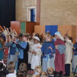 Today saw the start of Holy Week in school. Year 3 led the assembly today telling us the story of Palm Sunday. Through song they were able to tell us about a ‘lovely day in Jerusalem’ with Jesus being given a donkey to ride and Jesus is here, nothing to fear. We then heard about the busy town with people bringing their cloaks to lay down finishing everyone singing and shouting “Hosanna” and “Praises”. Our finally song saw the Chief Priests seeking an informer as the had a “plan, plan, plan to get this man”. Judas was then seen joining the Chief Priests for 30 silver coins.
