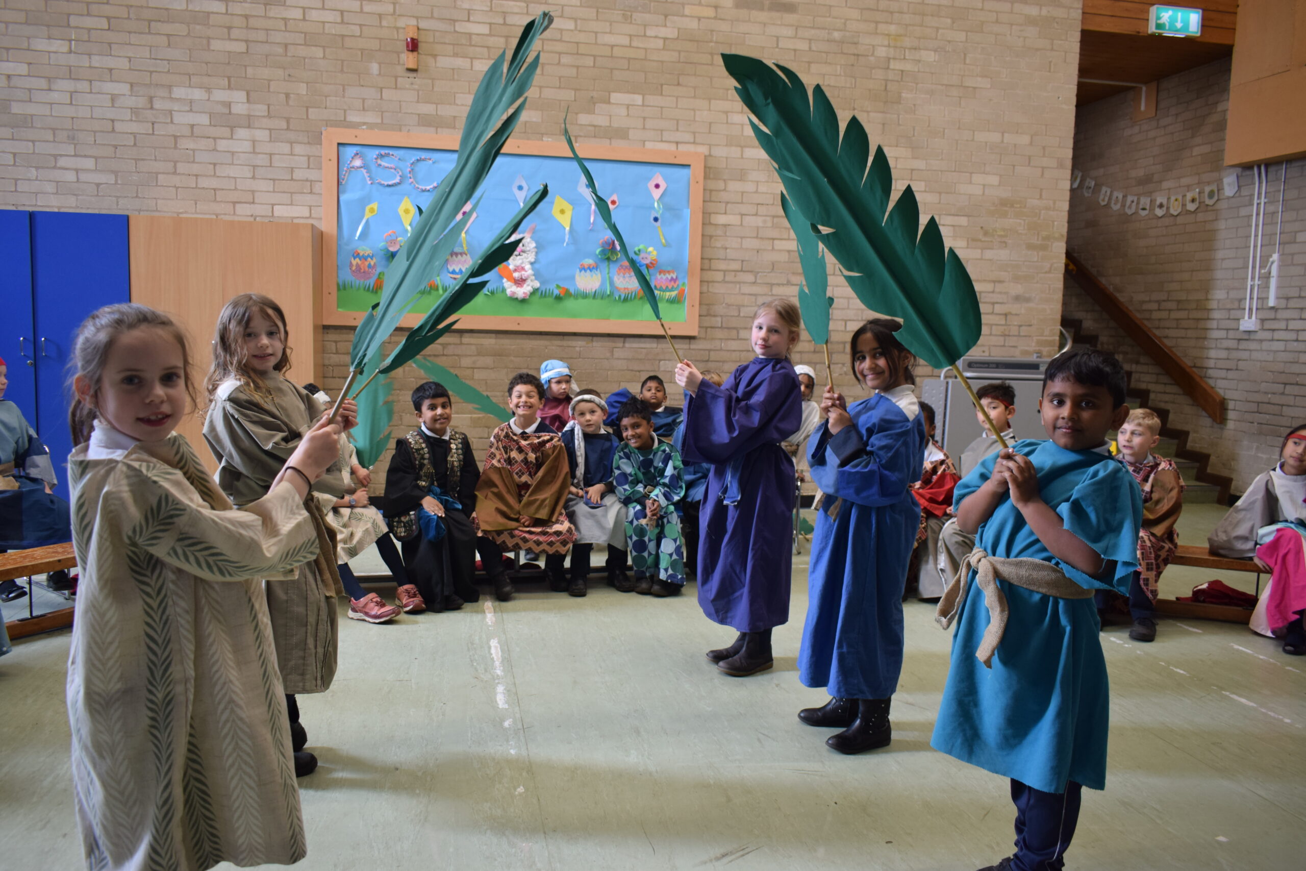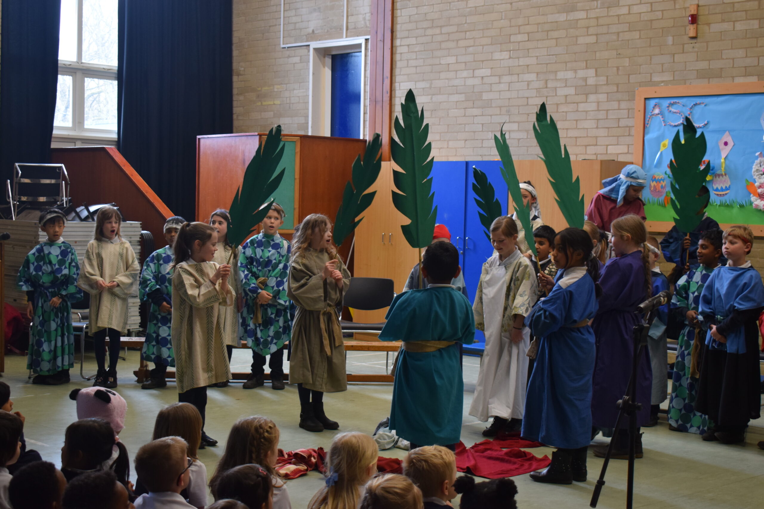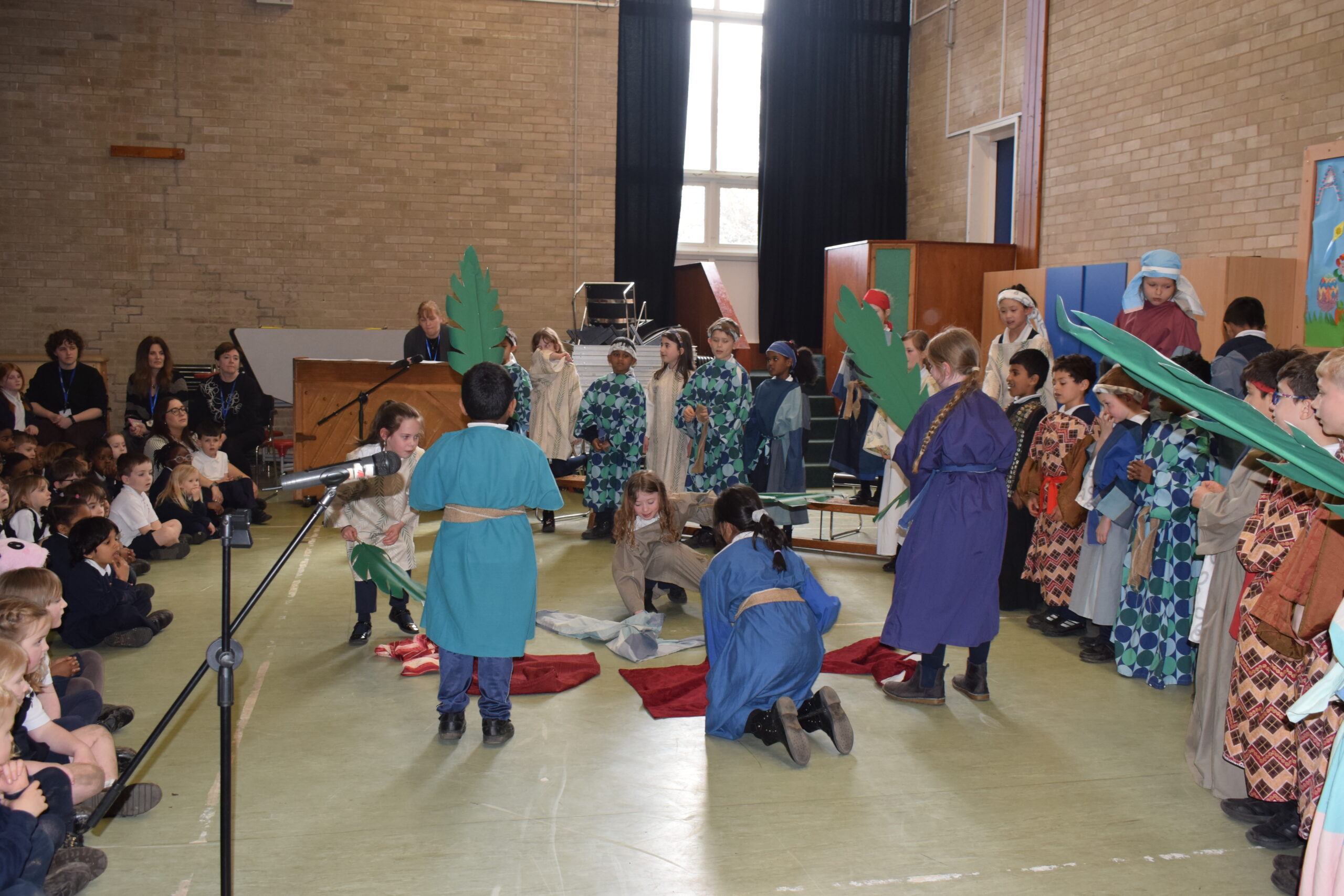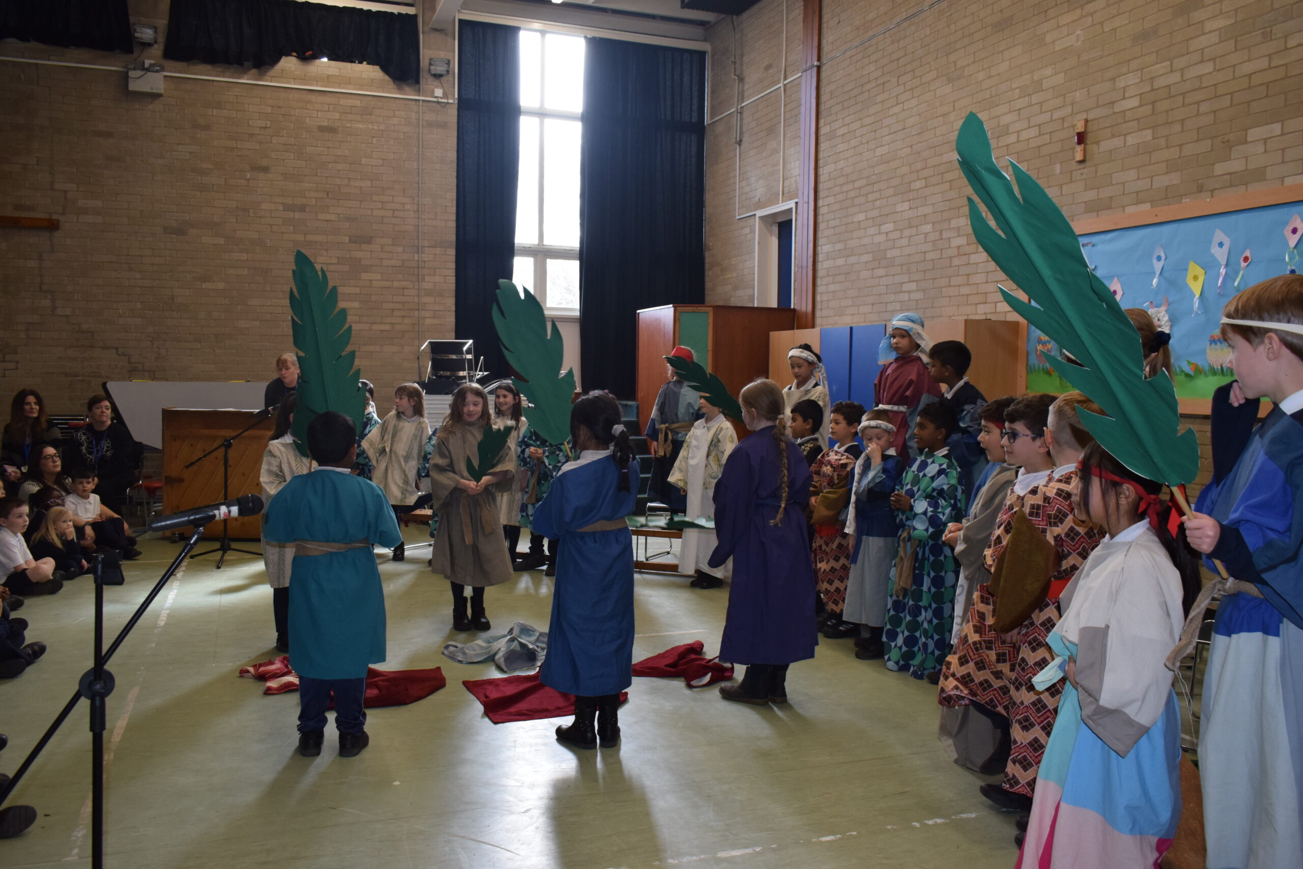 Today saw the start of Holy Week in school. Year 3 led the assembly today telling us the story of Palm Sunday. Through song they were able to tell us about a ‘lovely day in Jerusalem’ with Jesus being given a donkey to ride and Jesus is here, nothing to fear. We then heard about the busy town with people bringing their cloaks to lay down finishing everyone singing and shouting “Hosanna” and “Praises”. Our finally song saw the Chief Priests seeking an informer as the had a “plan, plan, plan to get this man”. Judas was then seen joining the Chief Priests for 30 silver coins.