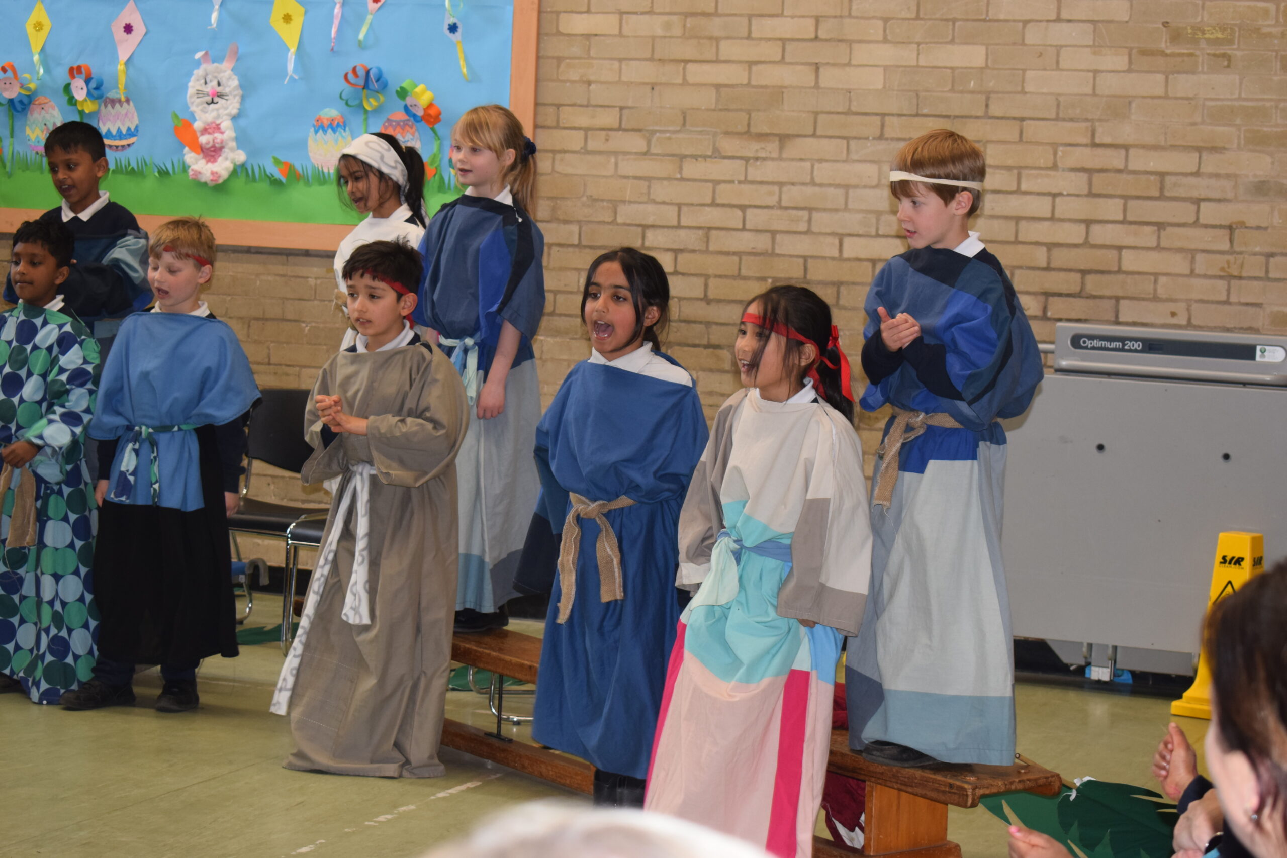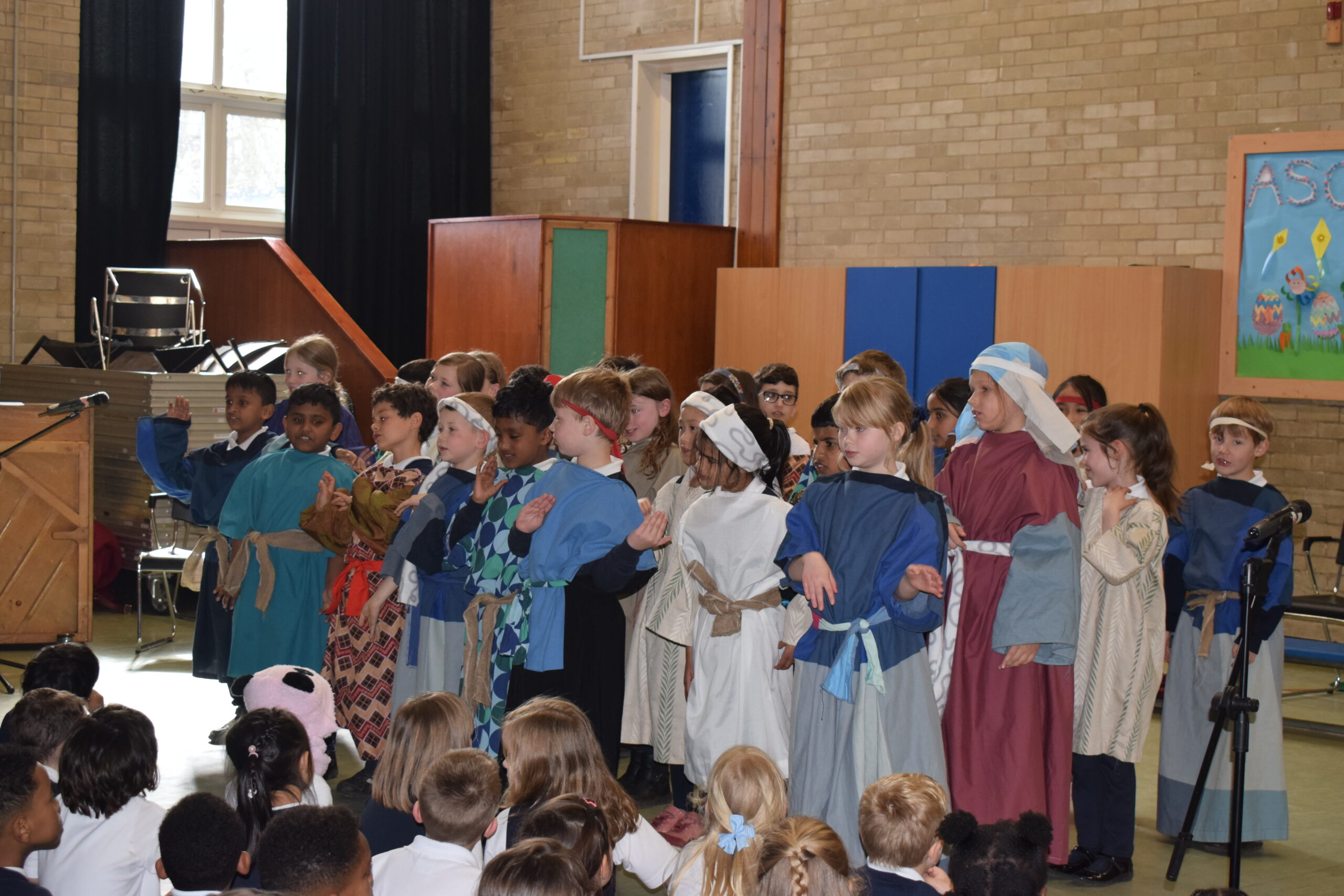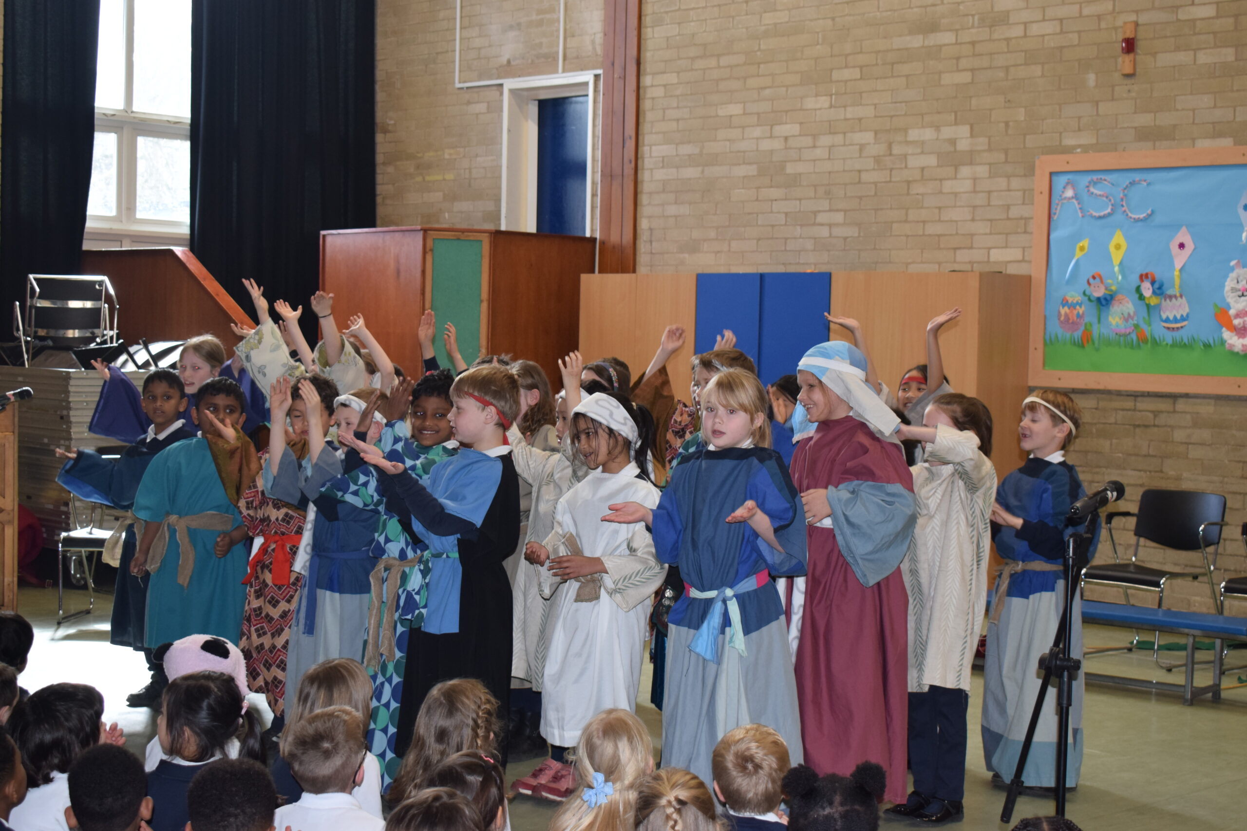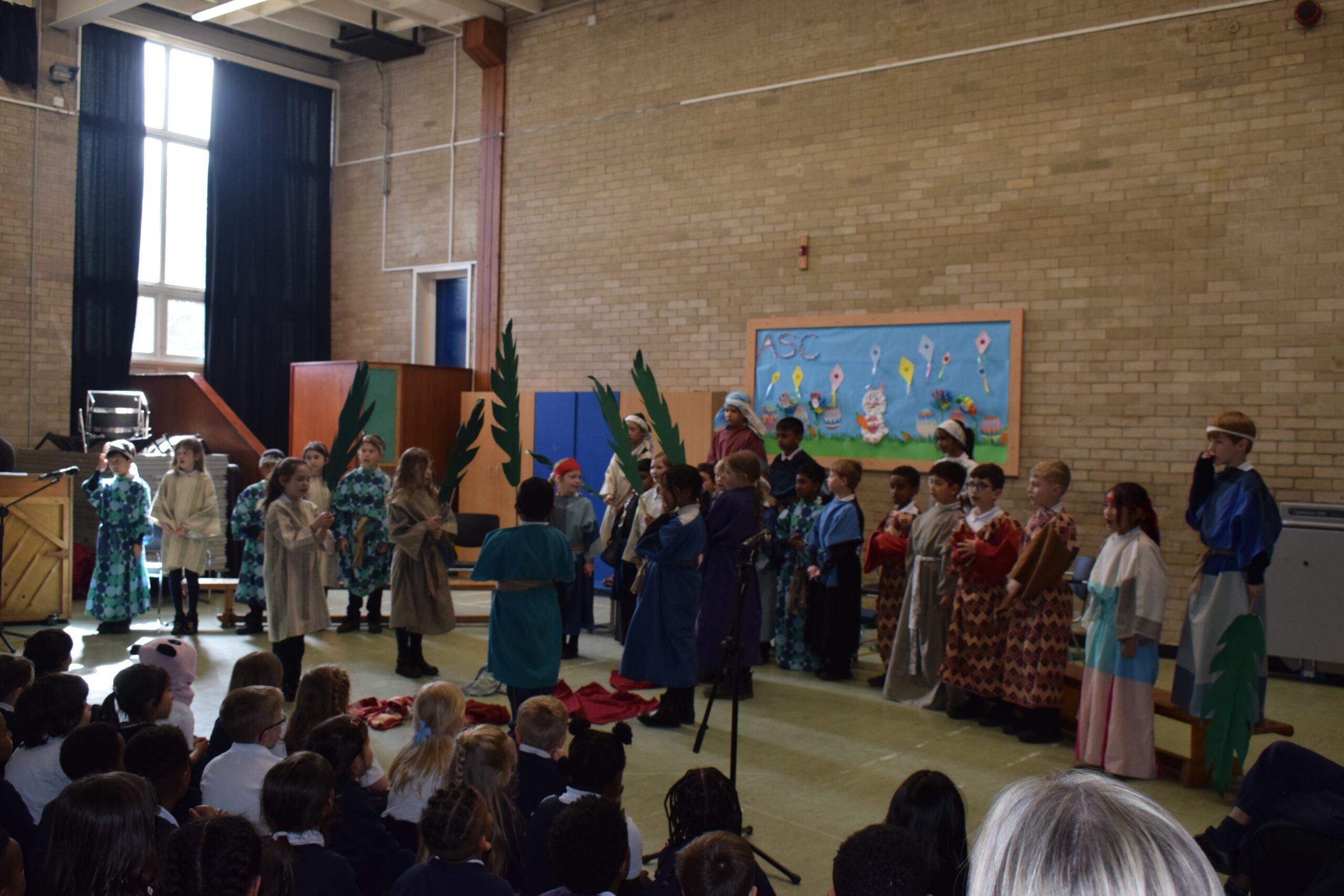 Today saw the start of Holy Week in school. Year 3 led the assembly today telling us the story of Palm Sunday. Through song they were able to tell us about a ‘lovely day in Jerusalem’ with Jesus being given a donkey to ride and Jesus is here, nothing to fear. We then heard about the busy town with people bringing their cloaks to lay down finishing everyone singing and shouting “Hosanna” and “Praises”. Our finally song saw the Chief Priests seeking an informer as the had a “plan, plan, plan to get this man”. Judas was then seen joining the Chief Priests for 30 silver coins.